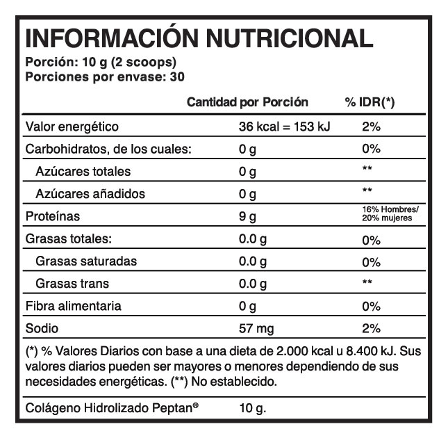 Cada porción (10g) equivale a 2 medidas al ras. Incluye dosificador.