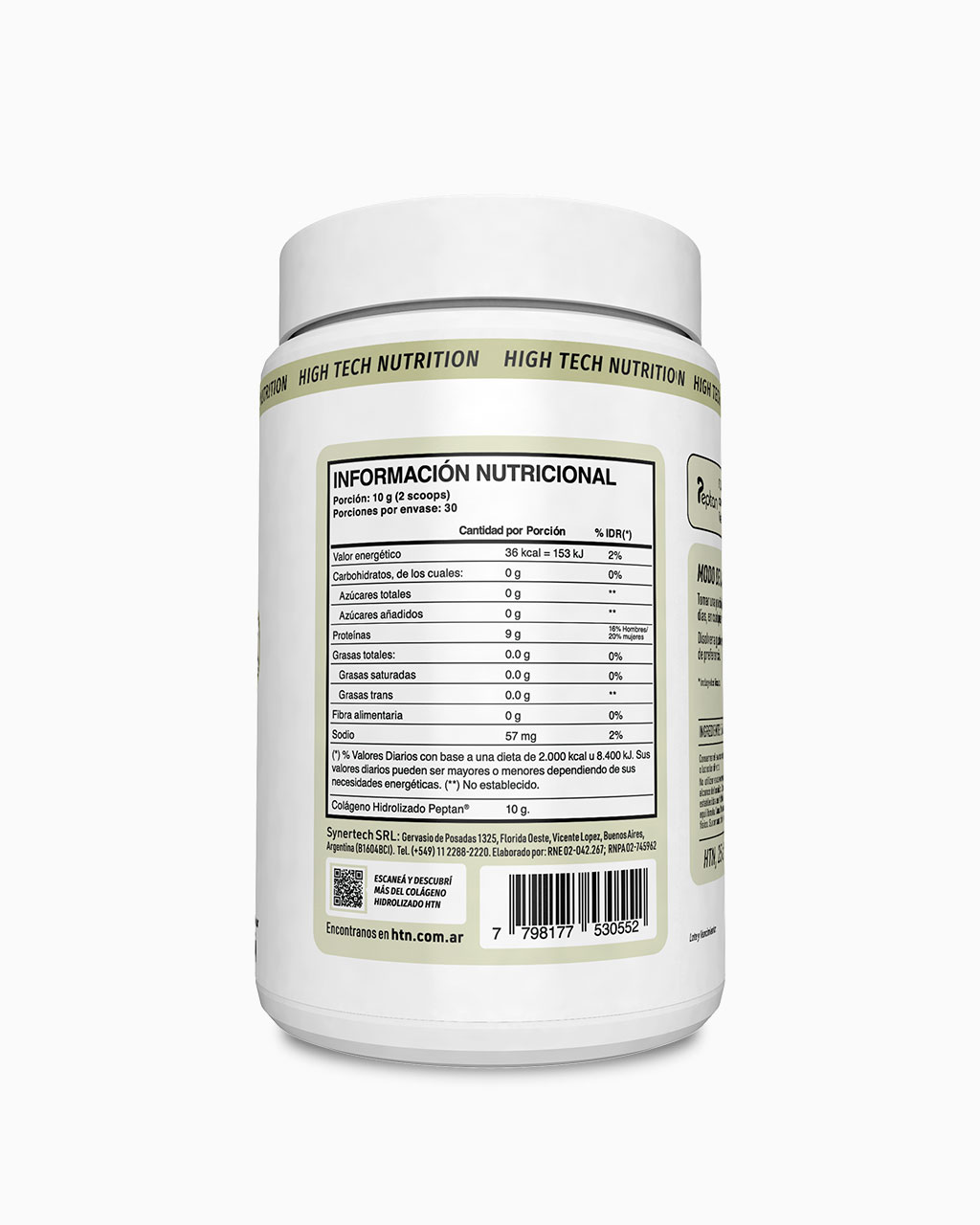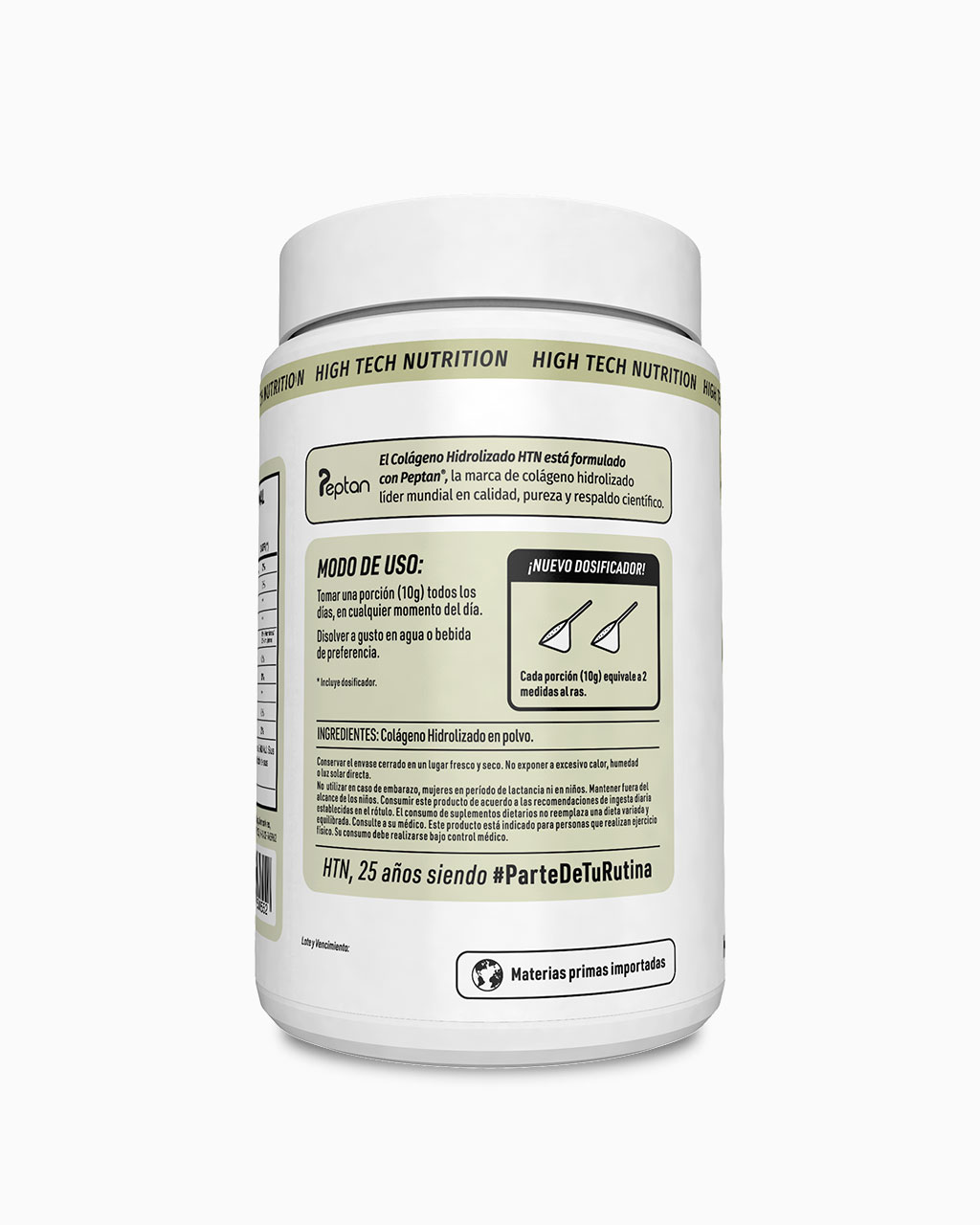 El colágeno es la proteína más abundante del cuerpo — forma la estructura de la piel, el pelo, las uñas, los huesos, los cartílagos y los tejidos conectivos. Para que nuestro organismo lo pueda aprovechar al máximo, necesita estar en su forma hidrolizada: ese proceso rompe la proteína en péptidos más pequeños, mejora su absorción y aumenta su biodisponibilidad. HTN se asoció con Peptan, el referente global en colágeno hidrolizado, para desarrollar un producto con un objetivo claro: disponer del ingrediente base en su forma más pura, con la mejor calidad y el respaldo científico de Peptan que lo garantiza.