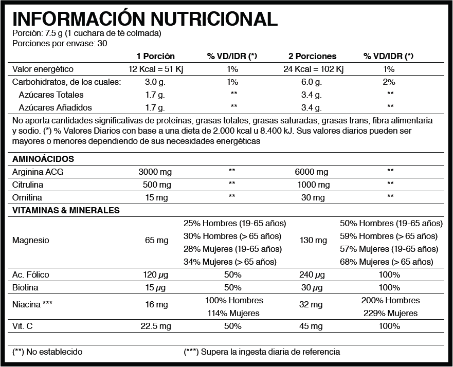 • Formulado con MÁS CITRULINA y MÁS ORNITINA
